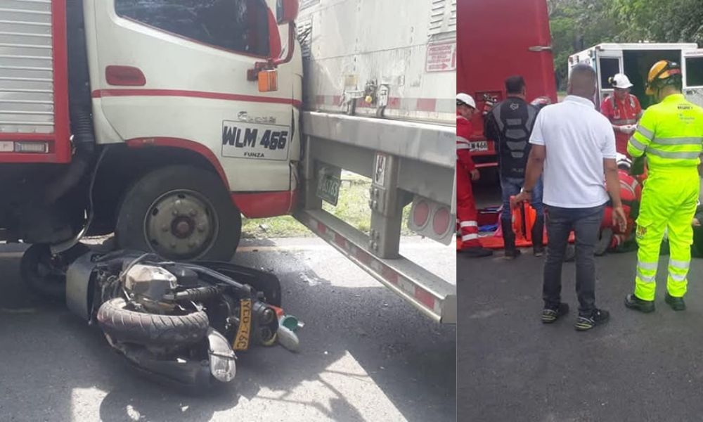 Según los primeros reportes, el siniestro ocurrió en un tramo de alta circulación vehicular, cuando la motocicleta fue impactada por el vehículo de carga, generando una situación de emergencia en la vía. Aún se desconocen las causas exactas del accidente, pero se presume que pudo haber estado relacionado con exceso de velocidad o una maniobra imprudente.